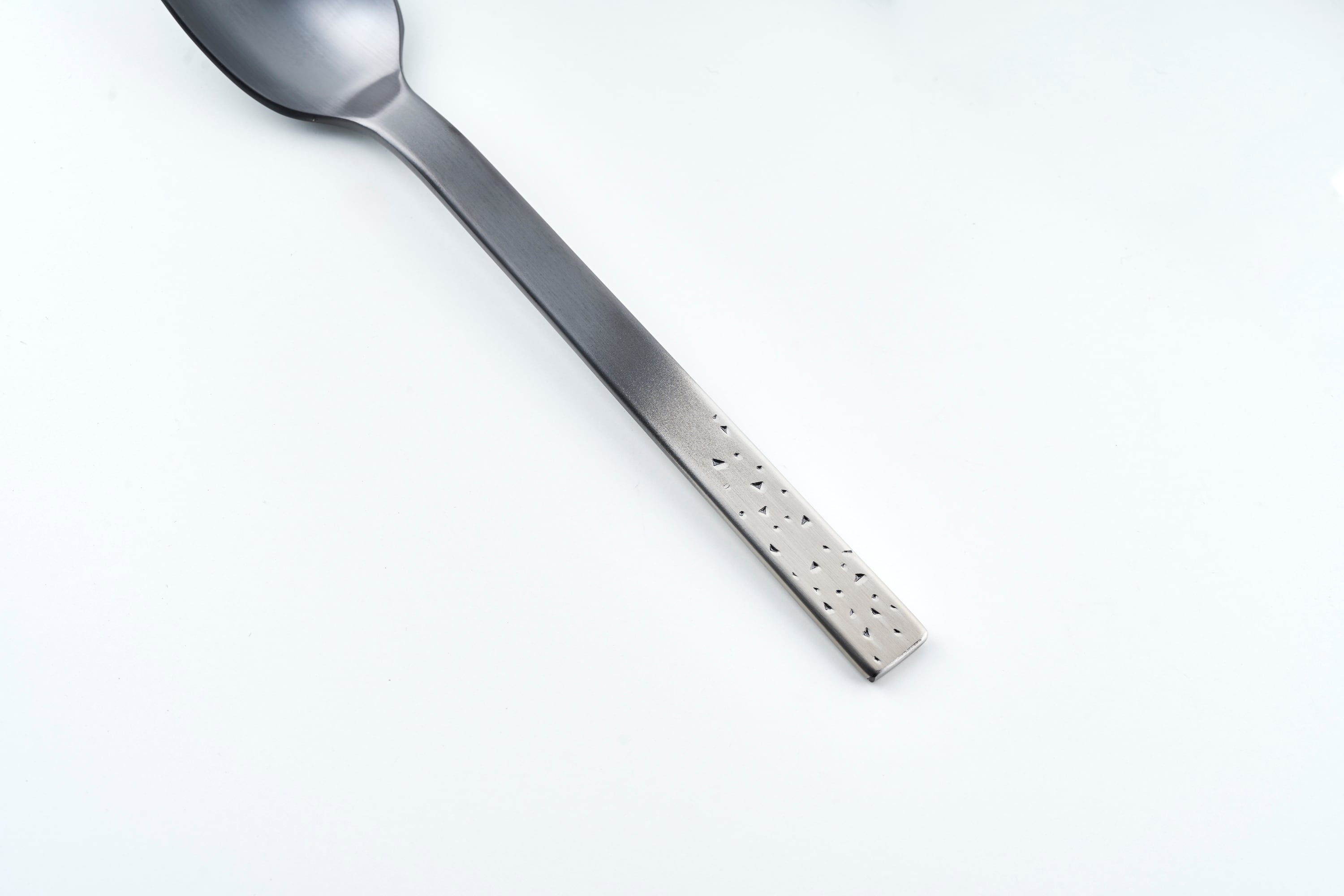 「磨く」「削る」に加え、カトラリー業界初の「剥ぐ」研磨技術を採用。職人の手の動きが模様として浮かび上がる、世界に一つだけの表情を持つカトラリーです。すべて手作業のため、同じ仕上がりは一つとしてありません。