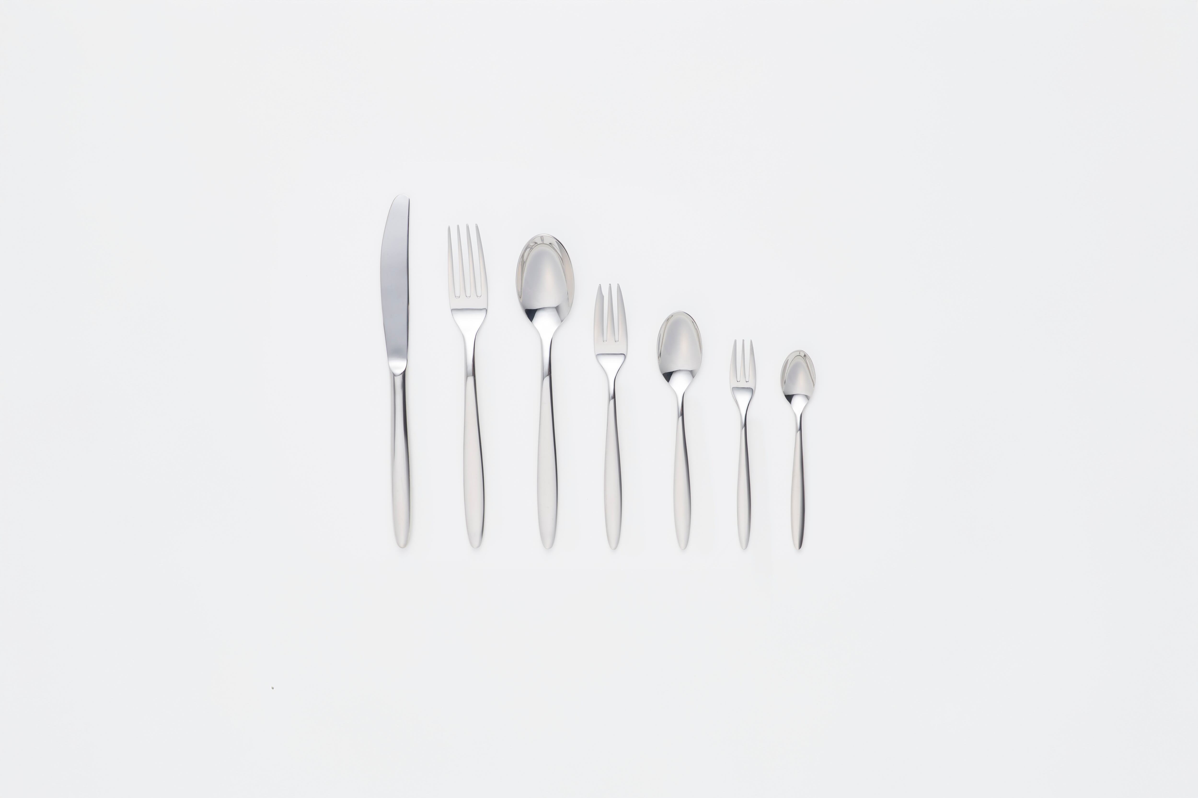 With no decorative patterns, Brunch relies on its weight, proportions, and polishing to create a sense of quiet luxury. Its clean design pairs easily with any cuisine, tableware, or dining environment.