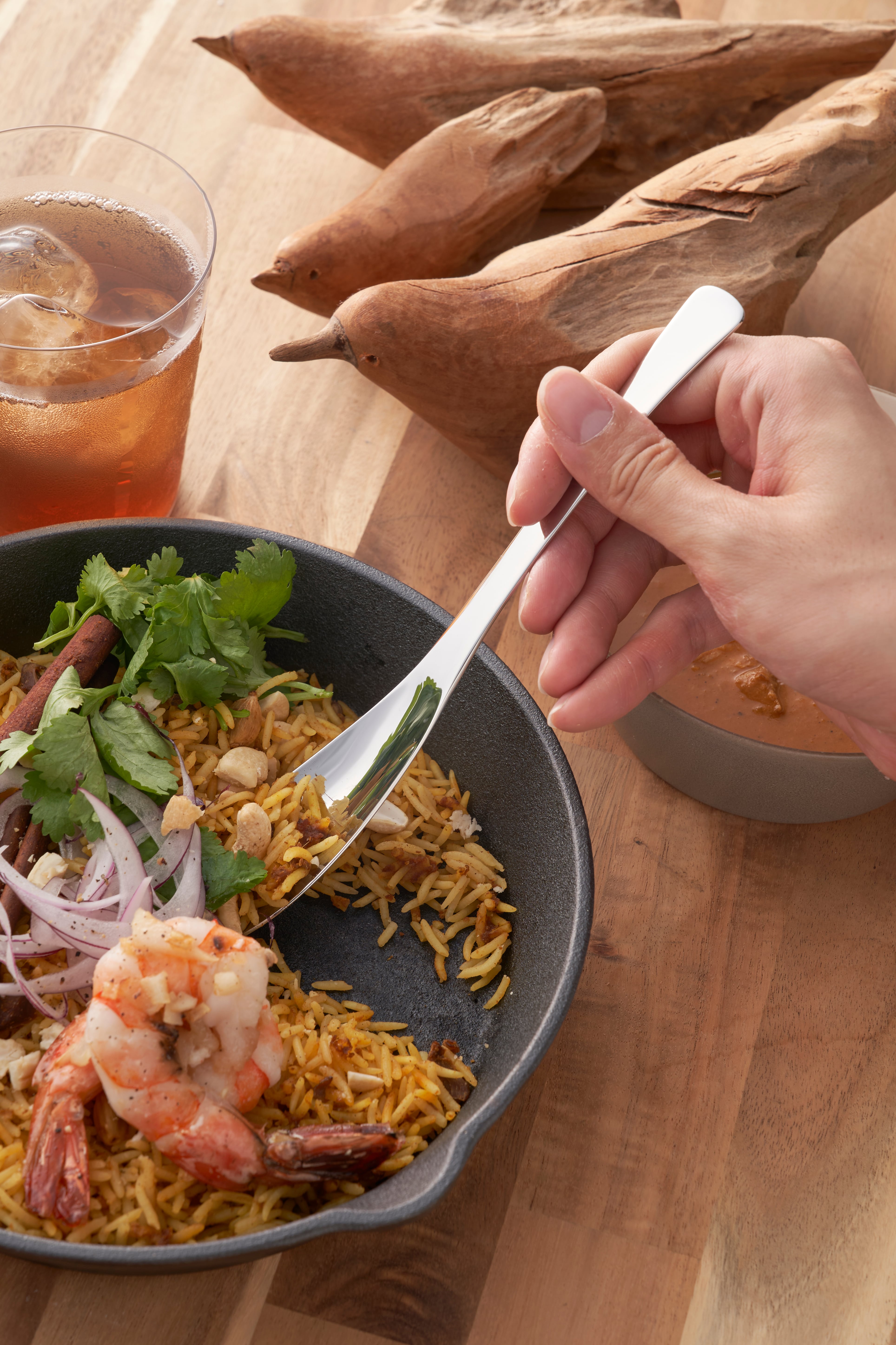 The thin, shallow head flexibly follows the curve of the plate, making it easy to scoop soups, pasta, curry, desserts, and more—cleanly and effortlessly.